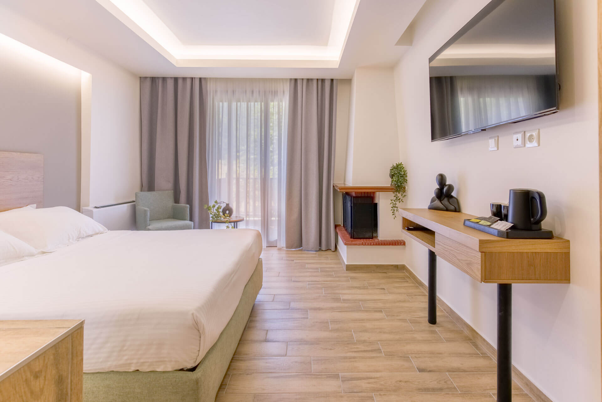 Great choice for a relaxing vacation for families with children or a group of friends. This huge triple room features one queen-size bed and 1 single bed. Also, there can be 3 single beds in a room for up to 3 people.